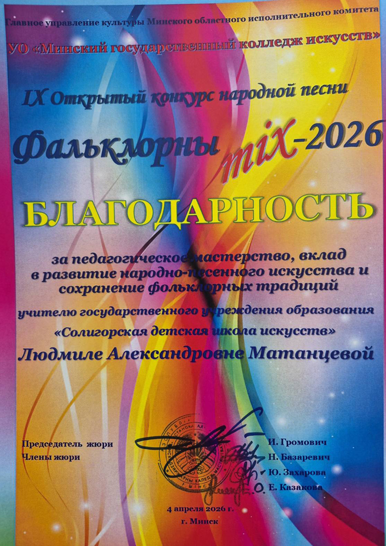 Шчыра віншуем вучняў і педагогаў аддзялення "Народная творчасць" з паспяховым выступленнем на