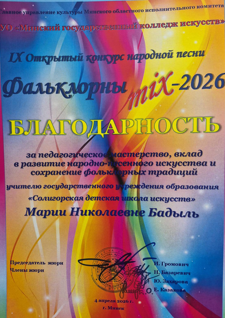 настаўнік Бадыль М. Н.Таксама Бадыль М. Н. адзначана граматай "За высокае педагагічнае майстэрства".