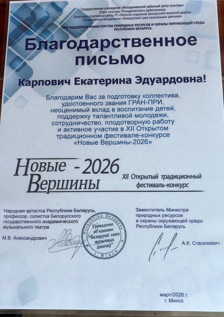 21 марта в г. Минске состоялся XII Открытый традиционный фестиваль- конкурс "Новые вершины 2026".